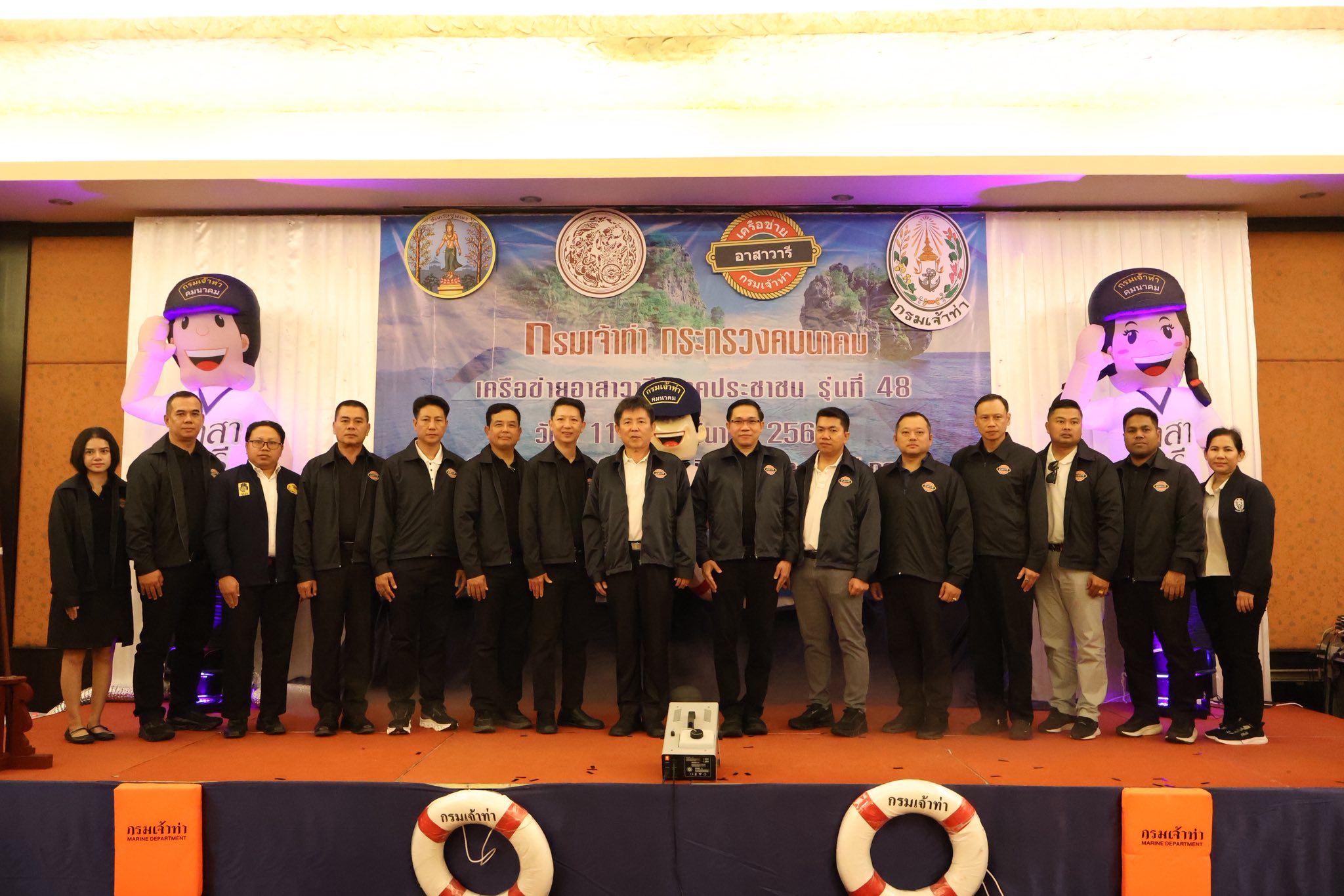 ในวันที่ 11 มีนาคม 2569 เวลา 09.00 น. ศูนย์อำนวยการรักษาผลประโยชน์ของชาติทางทะเล จังหวัดชุมพร (ศรชล.จว.ชพ.) โดย นาวาเอก ชำนาญ สอนแพง รองผู้อำนวยการ ศรชล.จังหวัดชุมพร พร้อมด้วยกำลังพล เข้าร่วมพิธีเปิดและร่วมกิจกรรมโครงการฝึกอบรมเครือข่าย “อาสาวารี รุ่นที่ 48 จังหวัดชุมพร” ณ โรงแรม เดอะนูโว ชุมพร บีช รีสอร์ท แอนด์ กอล์ฟ ตำบลปากน้ำ อำเภอเมือง จังหวัดชุมพร โดยมี นายเธียรชัย ชูกิตติวิบูลย์ ผู้ว่าราชการจังหวัดชุมพร เป็นผู้กล่าวต้อนรับ และได้รับเกียรติจาก นายวิวัธน์ ชิดเชิดวงศ์ รองอธิบดีกรมเจ้าท่า ด้านปลอดภัย เป็นประธานในพิธีฯ ทั้งนี้ มีผู้เข้ารับการอบรมจากหน่วยงานภาครัฐ ภาคเอกชน และภาคประชาชนในพื้นที่จังหวัดชุมพรและพื้นที่ใกล้เคียง เข้าร่วมจำนวนทั้งสิ้น 240 คน