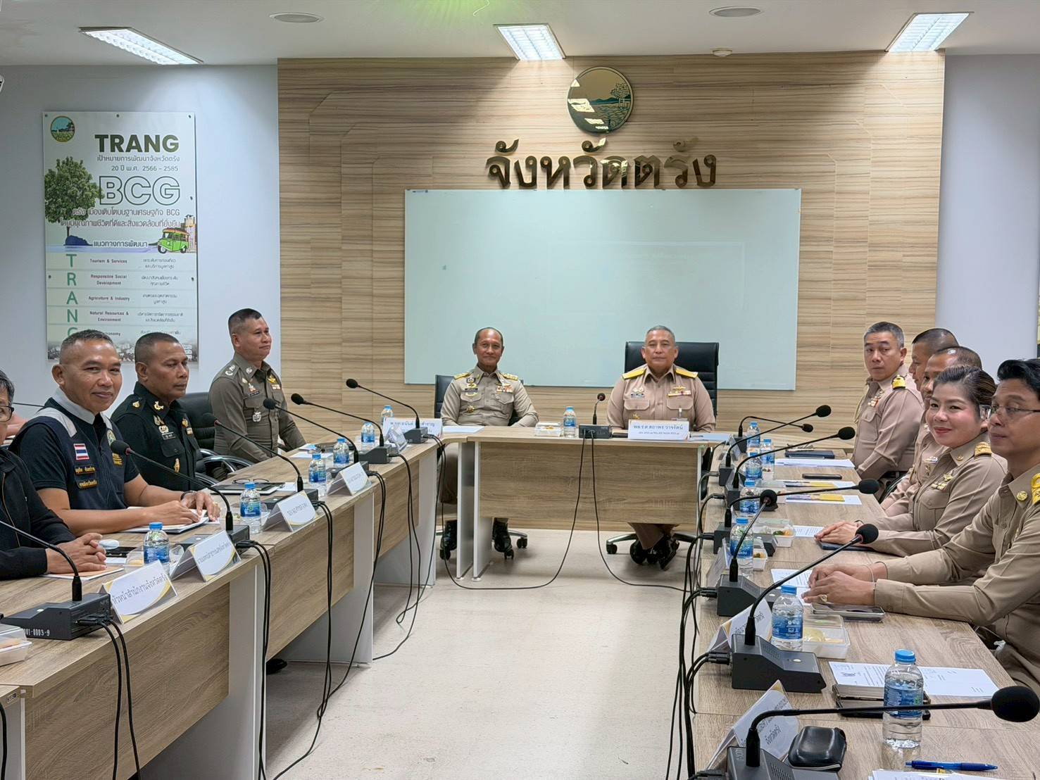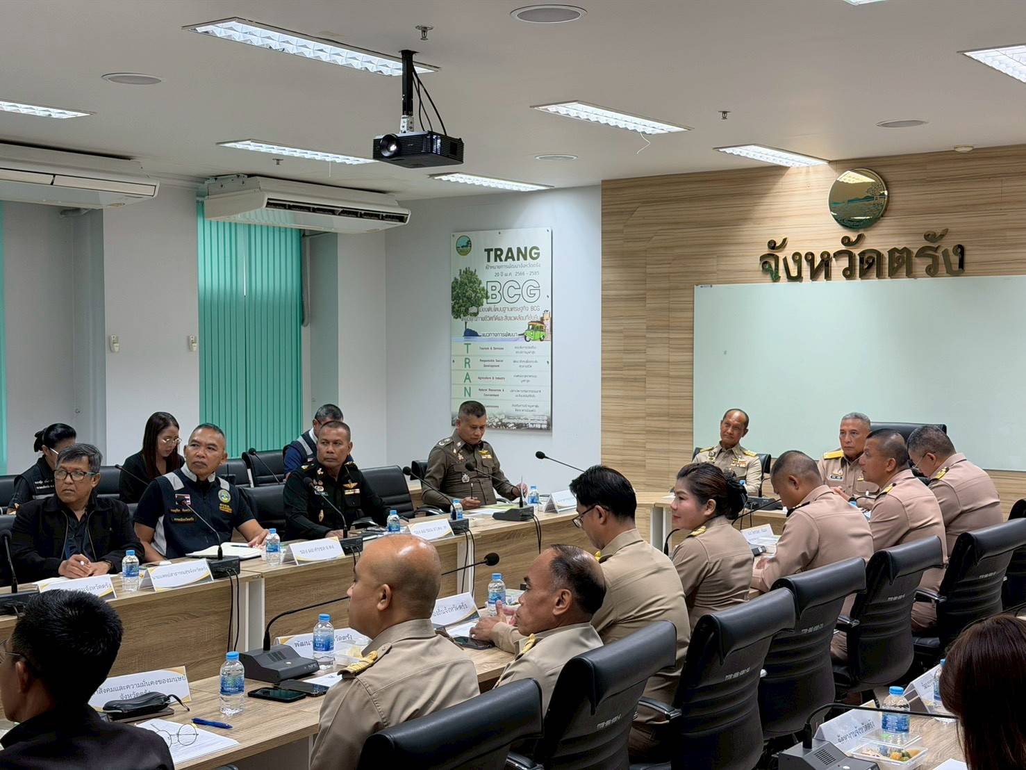 ในวันพุธที่ ๑๘ มี.ค.๖๙ เวลา ๐๙๐๐ ศรชล.จว.ตรัง โดย น.อ.ดุสิต จันทร์ราช รอง ผอ.ศรชล.จว.ตง. ศรชล.ภาค ๓ ร่วมกับหัวหน้าส่วนราชการ ประกอบด้วย ปลัดจังหวัดตรัง หัวหน้าสำนักงานจังหวัดตรัง ผู้บังคับการตำรวจภูธรจังหวัดตรัง รองผู้อำนวยการรักษาความมั่นคงภายในจังหวัดตรัง (ฝ่ายทหาร) เข้าร่วมให้การต้อนรับ พล.ร.ต.สถาพร วาจรัตน์ เสนาธิการทัพเรือภาคที่ ๓/หัวหน้าสำนักงานพัฒนาเพื่อความมั่นคงในระดับพื้นที่ในเขตทัพเรือภาคที่ ๓ และคณะ เดินทางเข้าพบผู้ว่าราชการจังหวัดตรัง เพื่อหารือข้อราชการในการเสริมสร้างความมั่นคงเชิงพื้นที่ในเขตทัพเรือภาคที่ ๓ และรับฟังการบรรยายสรุปพื้นที่เป้าหมายเสริมสร้างความมั่นคงเชิงพื้นที่และความก้าวหน้าแผนงาน/โครงการในพื้นที่เป้าหมายตามที่จังหวัดประกาศของจังหวัดตรัง ณ ศาลากลางจังหวัดตรัง อ.เมืองตรัง จว.ตรัง โดยมี พันจ่าโท อนันต์ บุญสำราญ รองผู้ว่าราชการจังหวัดตรัง เป็นหัวหน้าคณะให้การต้อนรับ