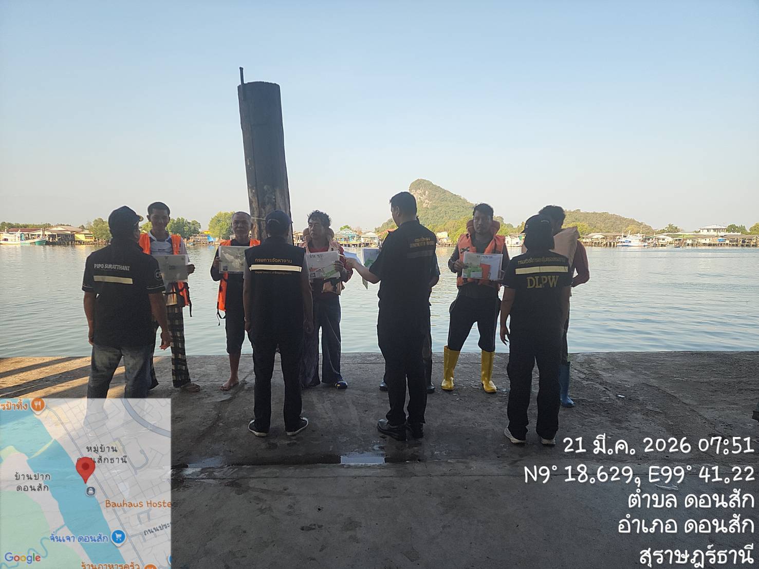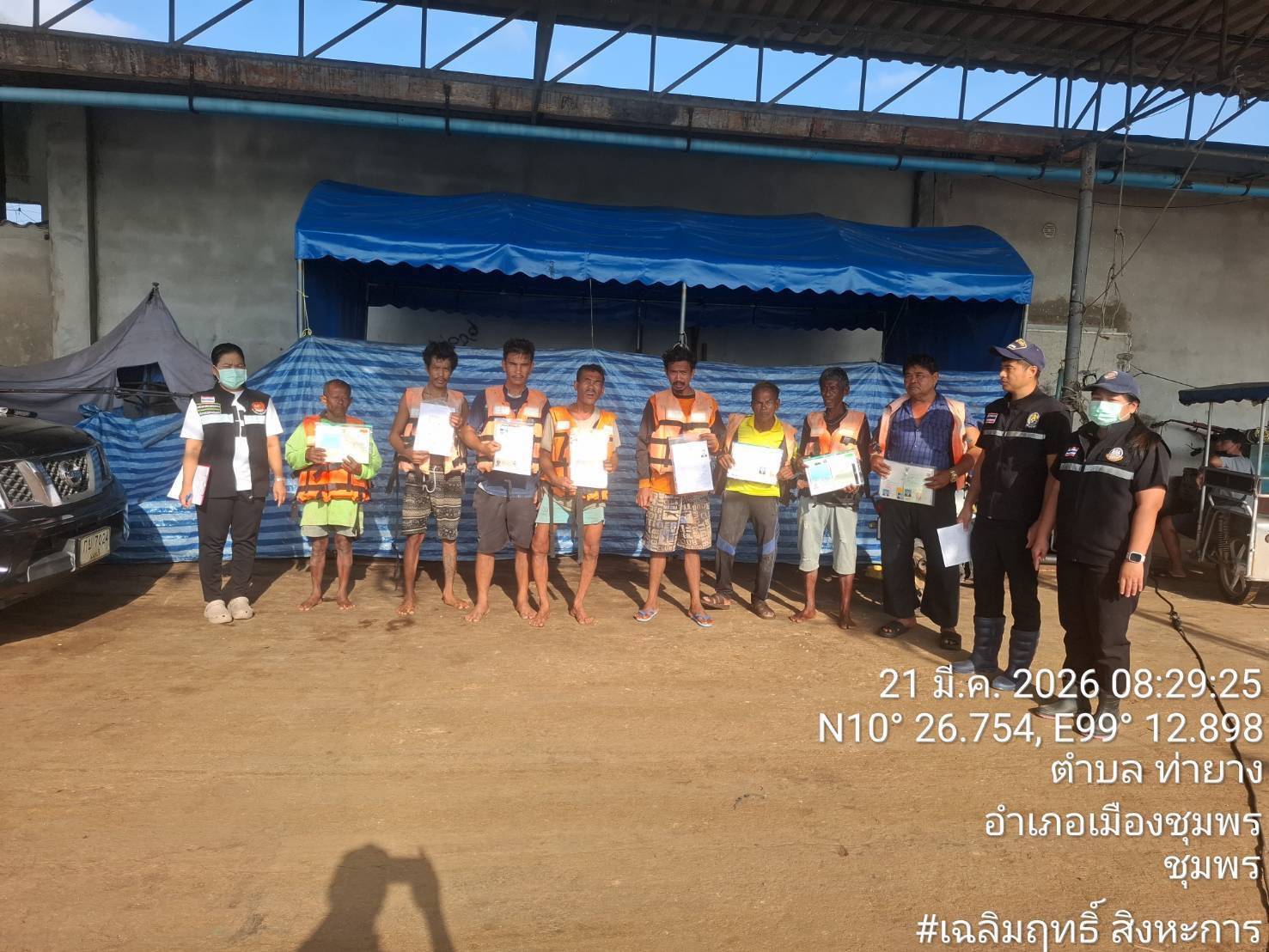 ในวันที่ 21 มีนาคม 2569 ศคท.จังหวัด ใน ศรชล.ภาค 2 บูรณาการตรวจท่าเทียบเรือ แพปลา เรือประมง และลูกเรือร่วมกับชุดสหวิชาชีพตรวจเรือประมงส่วนหน้า (FIP) และหน่วยงานรัฐในพื้นที่ รวมทั้งประชาสัมพันธ์สร้างการรับรู้การสวมเสื้อชูชีพขณะออกทำการประมง