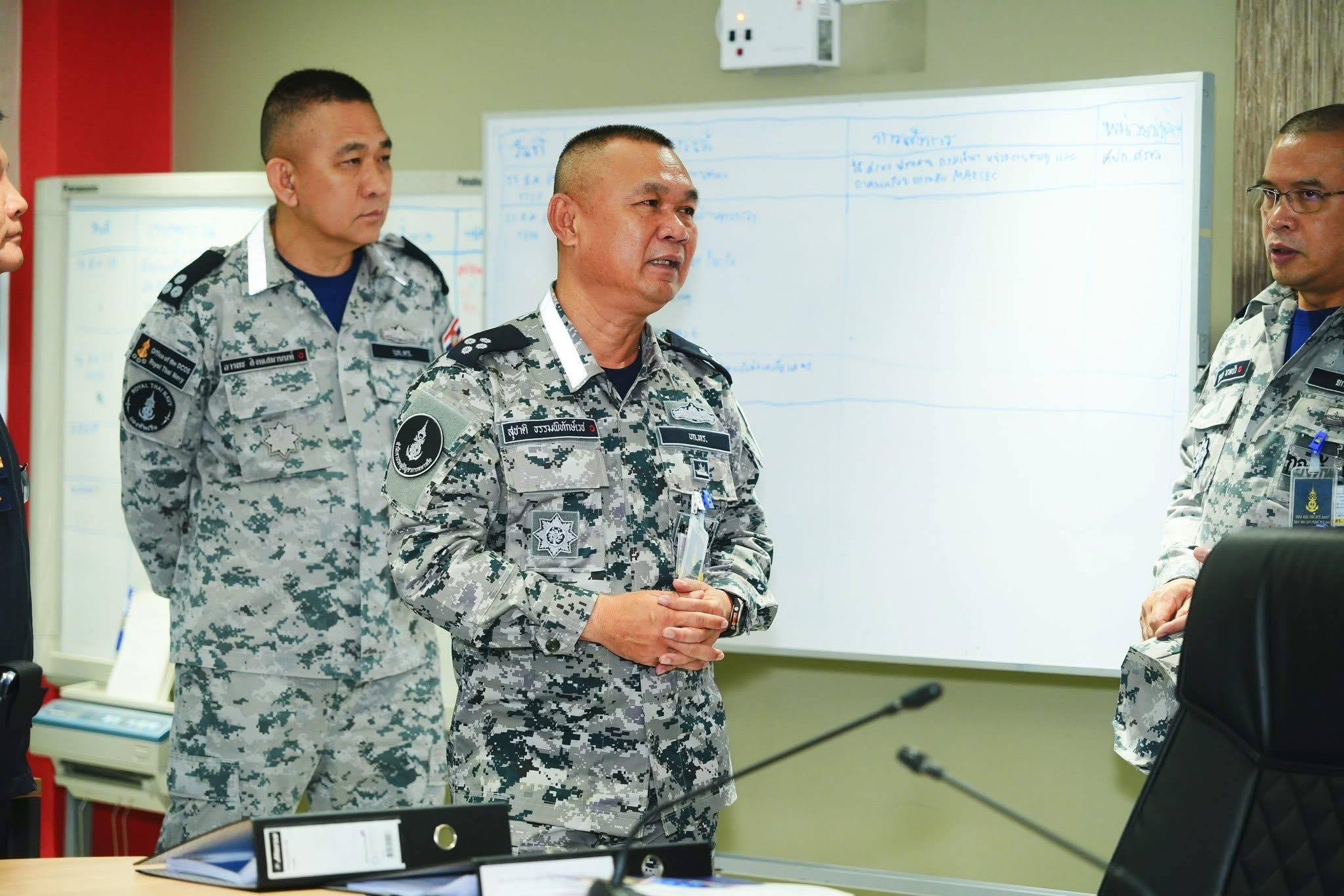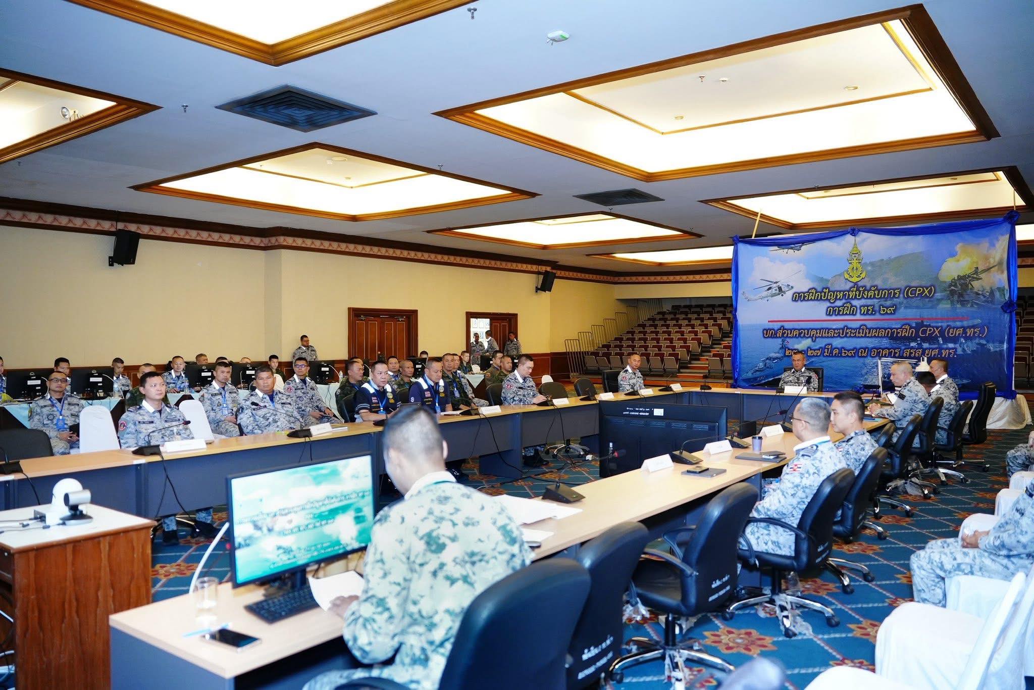 เมื่อวันที่ 25 มีนาคม 2569 พลเรือเอก สุชาติ ธรรมพิทักษ์เวช รองผู้บัญชาการทหารเรือ ในฐานะ ผู้ช่วยผู้อำนวยการศูนย์อำนวยการรักษาผลประโยชน์ของชาติทางทะเล (ผู้ช่วย ผอ.ศรชล.) เดินทางตรวจเยี่ยมและติดตามความก้าวหน้าการฝึกปัญหาที่บังคับการ (Command Post Exercise: CPX) ของ ศรชล. ประจำปี 2569 ณ ศูนย์ปฏิบัติการ ศรชล. พระราชวังเดิม เขตบางกอกใหญ่ กรุงเทพมหานคร โดยมี พลเรือตรี ไชยนันท์ ชูใหม่ ผู้อำนวยการศูนย์ยุทธการ ศรชล. ให้การต้อนรับและนำชมการปฏิบัติงานในส่วนต่าง ๆ
