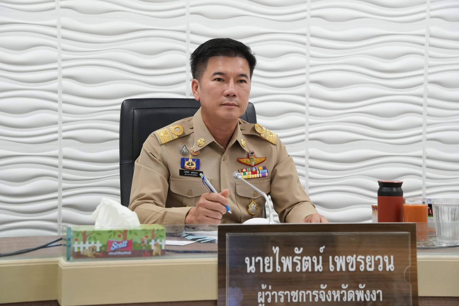 สำหรับการประชุมในครั้งนี้จัดขึ้นเพื่อพิจารณาปัญหา ข้อหารือ และติดตามผลการดำเนินงาน ประจำเดือน มีนาคม 2569 ของหน่วยงานต่างๆ ภายในจังหวัด โดยมี นายไพรัตน์ เพชรยวน ผู้ว่าราชการจังหวัดพังงา เป็นประธานในการประชุมฯ