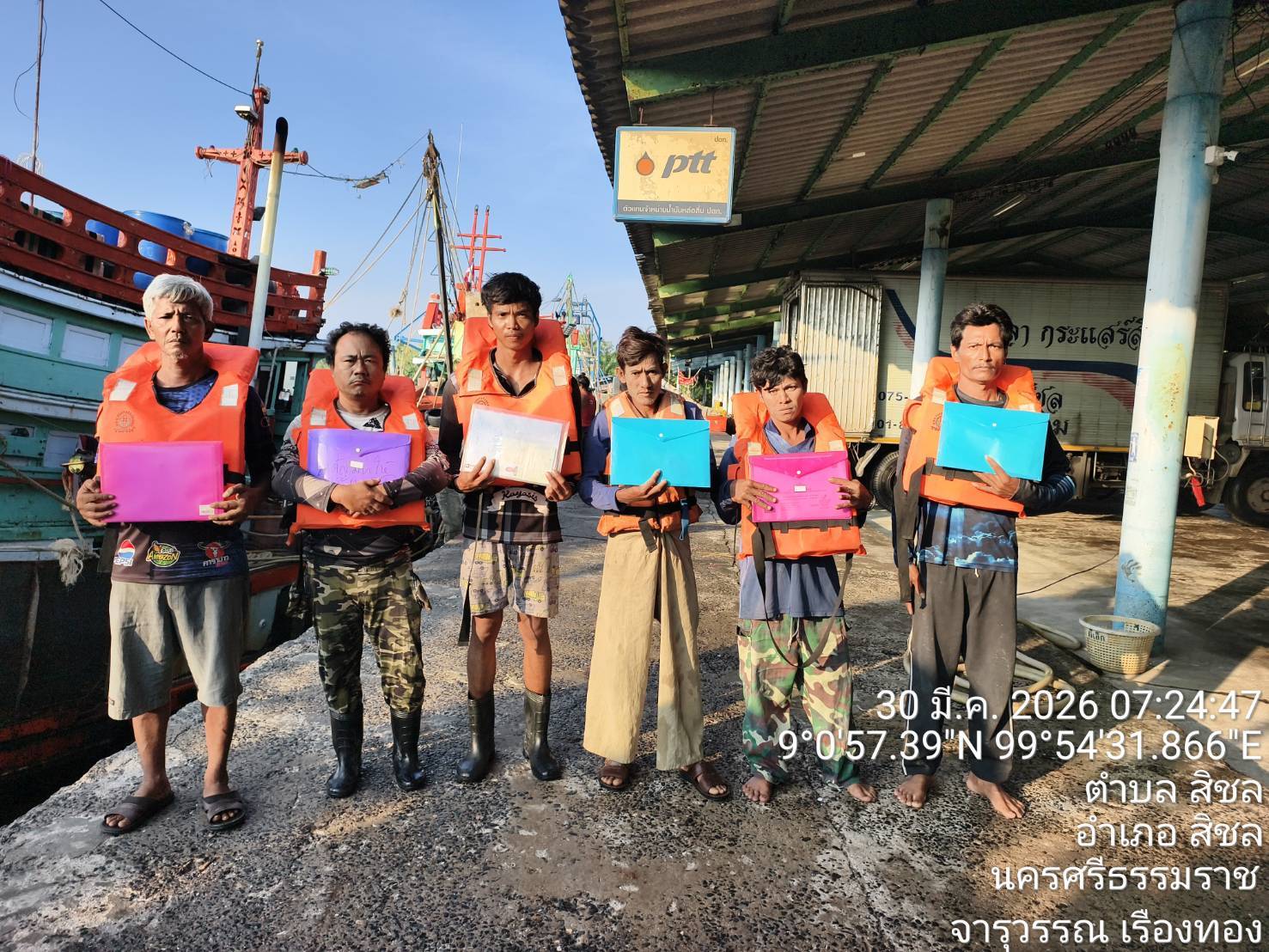 ในวันที่ 30 มีนาคม 2569 ศคท.จังหวัด ใน ศรชล.ภาค 2 บูรณาการตรวจท่าเทียบเรือ แพปลา เรือประมง และลูกเรือร่วมกับชุดสหวิชาชีพตรวจเรือประมงส่วนหน้า (FIP) และหน่วยงานรัฐในพื้นที่ รวมทั้งประชาสัมพันธ์สร้างการรับรู้การสวมเสื้อชูชีพขณะออกทำการประมง