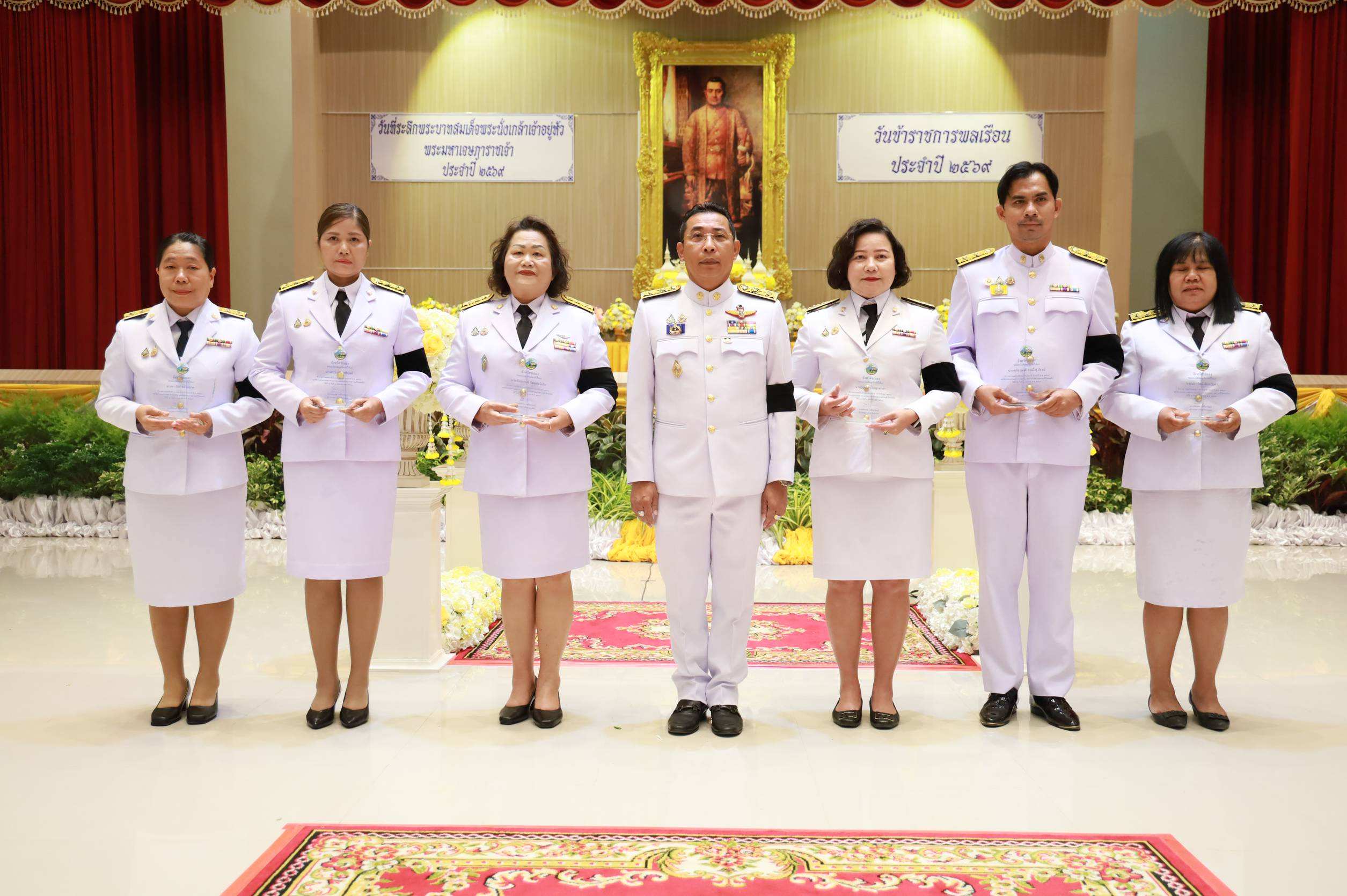 การจัดพิธีในครั้งนี้มี นายไตรภพ วงศ์ไตรรัตน์ ผู้ว่าราชการจังหวัดระยอง เป็นประธานในพิธี เพื่อแสดงความจงรักภักดีและน้อมรำลึกในพระมหากรุณาธิคุณที่ทรงมีต่อปวงชนชาวไทย นอกจากนี้ ประธานในพิธีได้มอบโล่เชิดชูเกียรติให้แก่ข้าราชการพลเรือนดีเด่นระดับจังหวัด ประจำปี 2568 จำนวน 6 คน เนื่องในวันข้าราชการพลเรือน เพื่อเป็นขวัญกำลังใจและยกย่องเชิดชูเกียรติแก่ผู้ที่ประพฤติปฏิบัติตนเป็นแบบอย่างที่ดีในการปฏิบัติราชการต่อไป