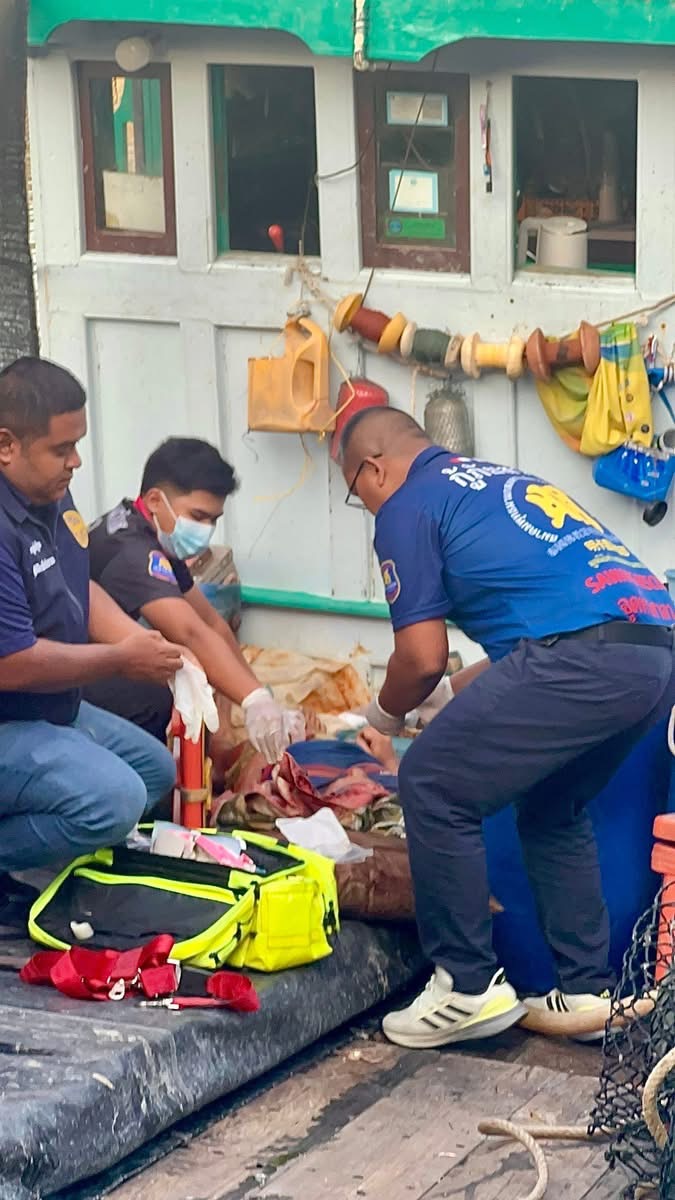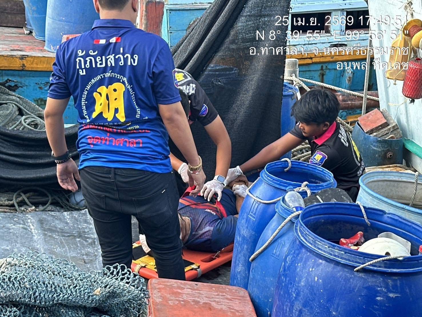 ศรชล.ภาค 2 บูรณาการร่วมกับหน่วยปราบปรามประมงฯ และกู้ภัยมูลนิธิร่วมใจปากพนัง/สว่างจุดท่าศาลา นำเรือออกไปรับตัวผู้บาดเจ็บส่งโรงพยาบาลท่าศาลา