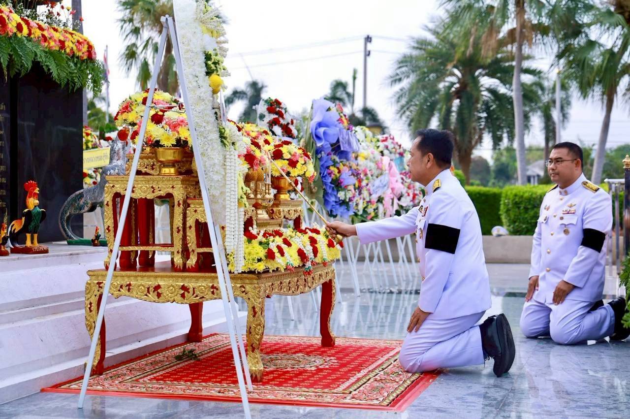 เมื่อวันที่ 25 เมษายน 2569 เวลา 07.30 น. ศูนย์อำนวยการรักษาผลประโยชน์ของชาติทางทะเลจังหวัดชลบุรี (ศรชล.จว.ชบ.) โดย นาวาเอก พินัย จินชัย รองผู้อำนวยการศูนย์อำนวยการรักษาผลประโยชน์ของชาติทางทะเลจังหวัดชลบุรี พร้อมด้วยกำลังพลในสังกัด เข้าร่วมพิธีวางพวงมาลาถวายราชสักการะเนื่องในวันคล้ายวันสวรรคตสมเด็จพระนเรศวรมหาราช ประจำปี 2569 ณ ลานพระบรมราชานุสาวรีย์สมเด็จพระนเรศวรมหาราช กรมทหารราบที่ 902 รักษาพระองค์ (ร.902 รอ.) ค่ายมหาวชิราลงกรณ์ราชวัลลภ โดยมี นายนริศ นิรามัยวงศ์ ผู้ว่าราชการจังหวัดชลบุรี เป็นประธานในพิธี
