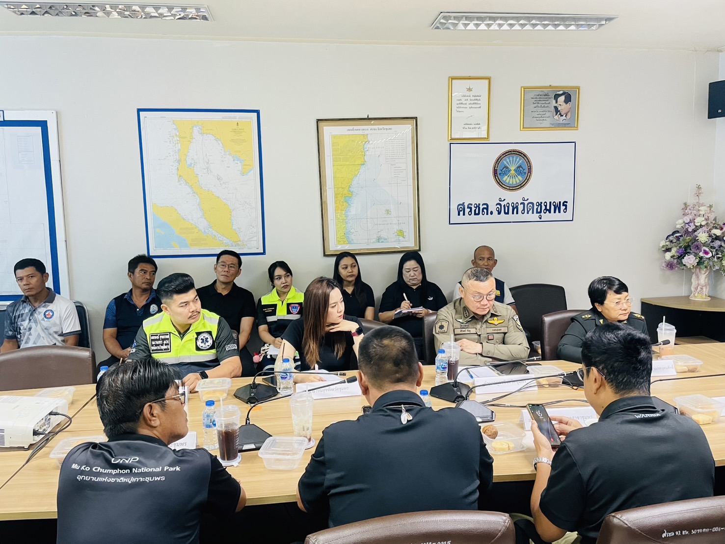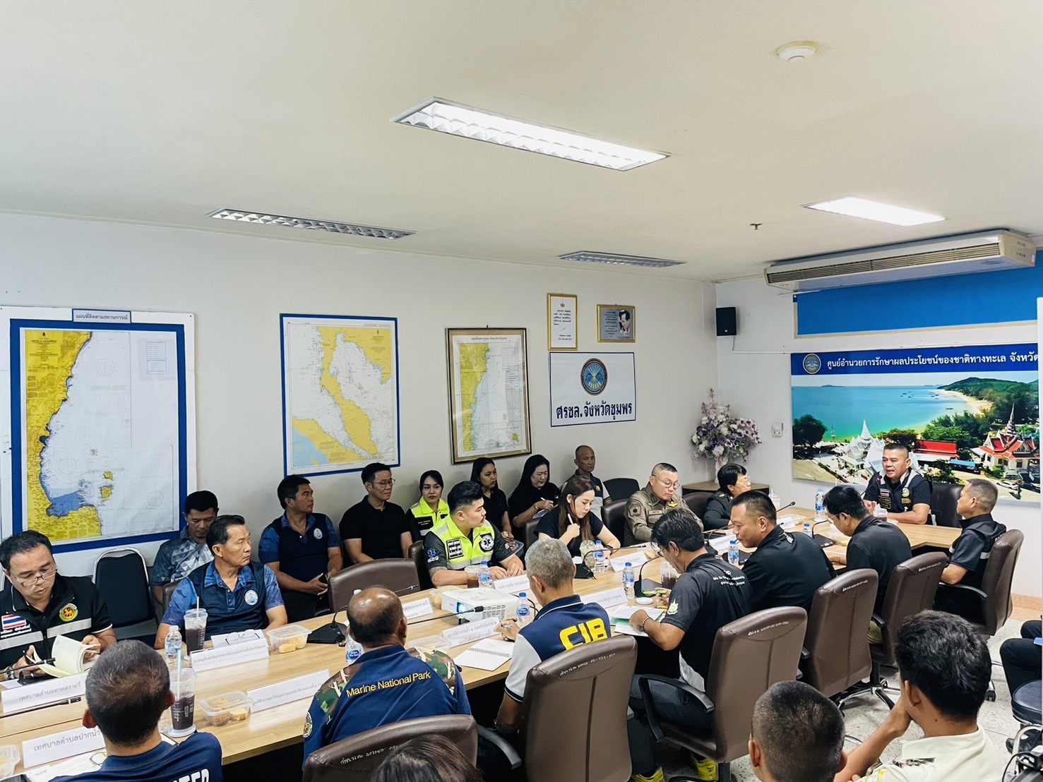 เมื่อวันที่ 28 เมษายน 2569 เวลา 09.00 - 12.00 น. ศูนย์อำนวยการรักษาผลประโยชน์ของชาติทางทะเลจังหวัดชุมพร (ศรชล.จว.ชพ.) จัดการประชุมเตรียมความพร้อมการฝึกซ้อมแผนการจัดการอุบัติเหตุและการกู้ภัยทางทะเลจังหวัดชุมพร ณ ห้องประชุมสำนักงาน ศรชล.จว.ชพ. ชั้น 2 ศาลากลางจังหวัดชุมพร โดยมี นาวาเอก ชำนาญ สอนแพง รองผู้อำนวยการศูนย์อำนวยการรักษาผลประโยชน์ของชาติทางทะเลจังหวัดชุมพร เป็นประธานการประชุม