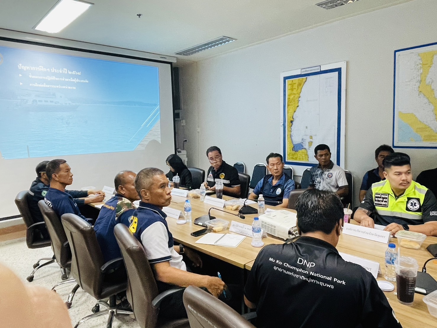 การประชุมในครั้งนี้ ได้รับความร่วมมือจากหน่วยงานราชการและภาคเอกชนในพื้นที่จังหวัดชุมพรเข้าร่วมบูรณาการอย่างพร้อมเพรียง อาทิ มณฑลทหารบกที่ 44, ตำรวจภูธรจังหวัด, กองอำนวยการรักษาความมั่นคงภายในจังหวัด, สำนักงานป้องกันและบรรเทาสาธารณภัยจังหวัด, สำนักงานเจ้าท่าภูมิภาคสาขาชุมพร, หน่วยงานสังกัดกรมทรัพยากรทางทะเลและชายฝั่ง, ตำรวจน้ำ, ศูนย์ PIPO, องค์กรปกครองส่วนท้องถิ่น และบริษัท คลังน้ำมันไออาร์พีซี จำกัด