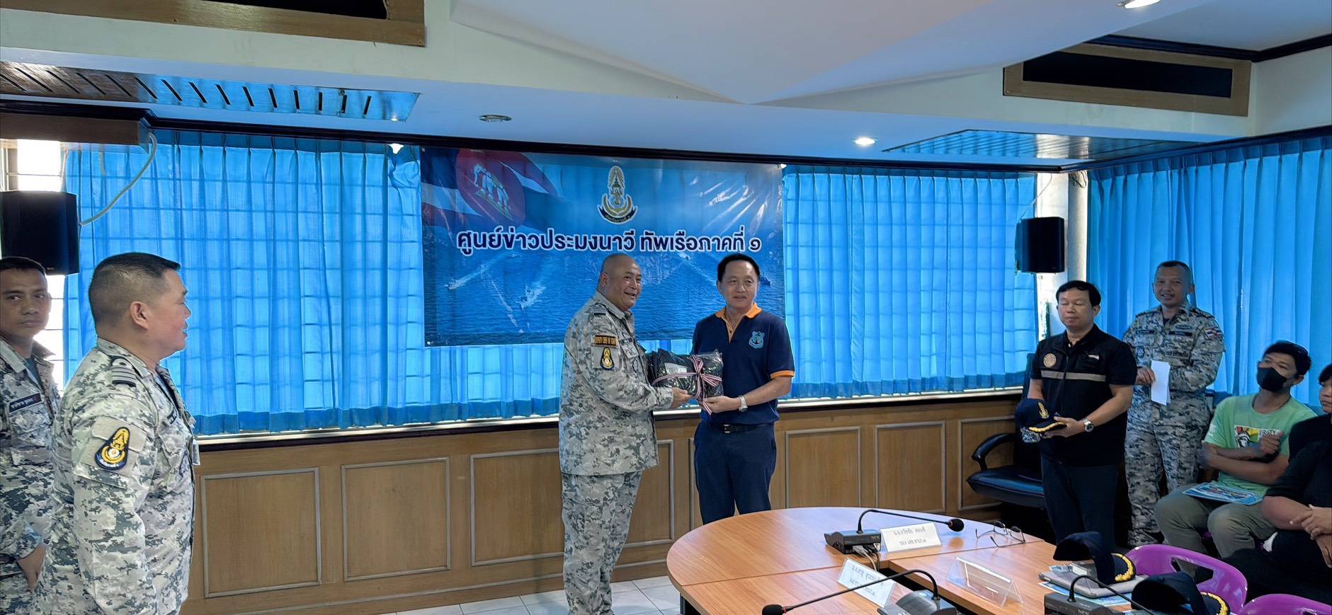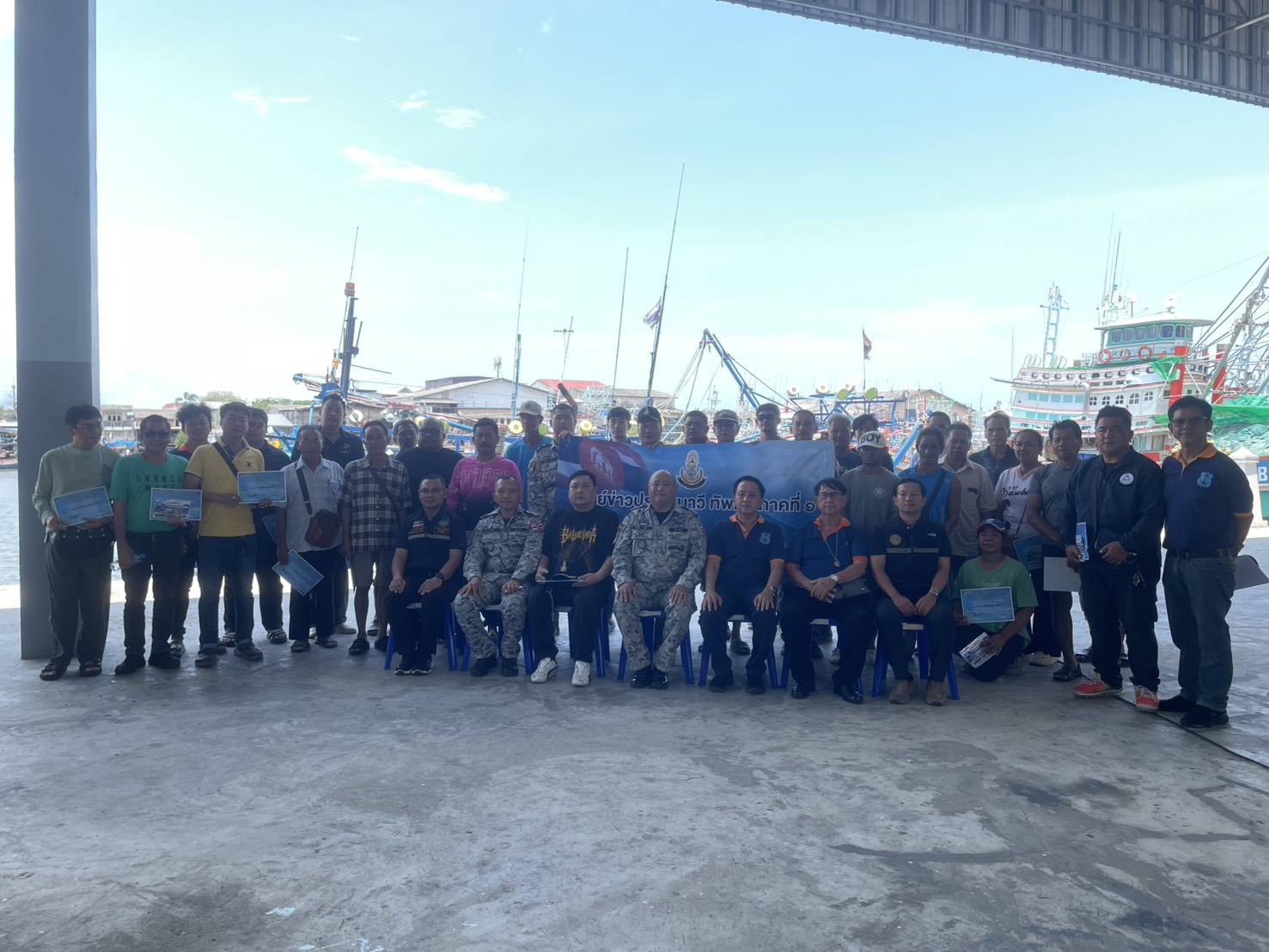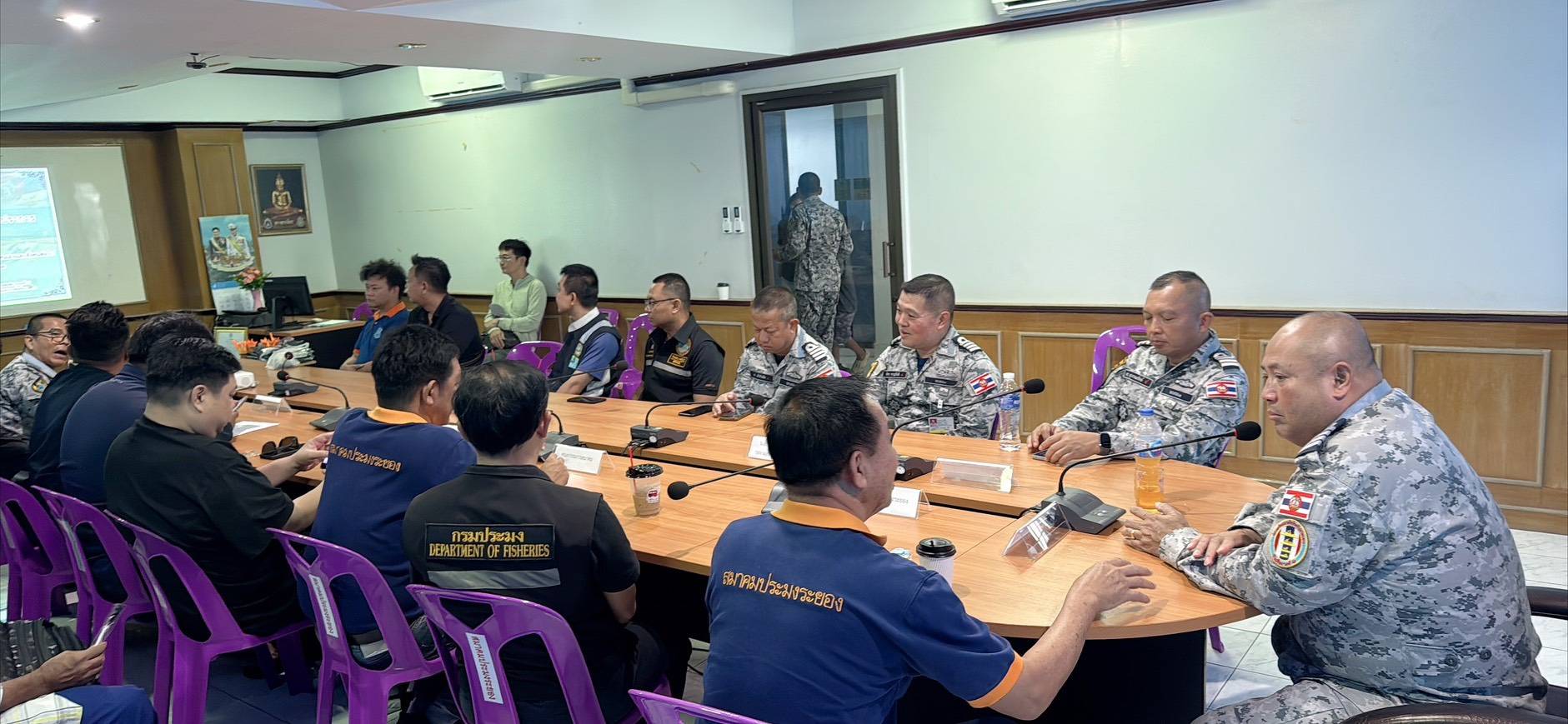 เมื่อวันที่ 28 เมษายน 2569 เวลา 09.00 – 12.00 น. ศูนย์อำนวยการรักษาผลประโยชน์ของชาติทางทะเลจังหวัดระยอง (ศรชล.จว.รย.) / ศูนย์ควบคุมความมั่นคงท่าเรือจังหวัดระยอง (ศคท.จว.รย.) โดย นาวาเอก วรรณรักษ์ วัชรินทร์รัตน์ หัวหน้าศูนย์ควบคุมความมั่นคงท่าเรือจังหวัดระยอง พร้อมด้วยเจ้าหน้าที่ประสานความมั่นคง บูรณาการการปฏิบัติร่วมกับทัพเรือภาคที่ 1 (ทรภ.1) จัดกิจกรรมพบปะกลุ่มอาชีพประมงในพื้นที่จังหวัดระยอง ณ สมาคมประมงระยอง อำเภอเมือง จังหวัดระยอง โดยมี นาวาเอก ธวัชชัย สอนซี รองเสนาธิการทัพเรือภาคที่ 1 เป็นประธานในพิธี และได้รับเกียรติจาก นายพรศักดิ์ แย้มกลิ่น นายกสมาคมประมงระยอง ให้การต้อนรับ