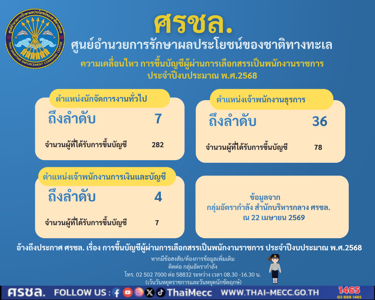 เมื่อวันที่ 12 เมษายน 2569 เวลา 09.00 น. ศูนย์อำนวยการรักษาผลประโยชน์ของชาติทางทะเลภาค 3 โดย นาวาเอก ดุสิต จันทร์ราช รองผู้อำนวยการศูนย์อำนวยการรักษาผลประโยชน์ของชาติทางทะเลจังหวัดตรัง (ศรชล.จว.ตรัง) และหัวหน้าศูนย์ควบคุมความมั่นคงท่าเรือจังหวัดตรัง (ศคท.จว.ตรัง) พร้อมด้วยเจ้าหน้าที่ ลงพื้นที่บูรณาก...